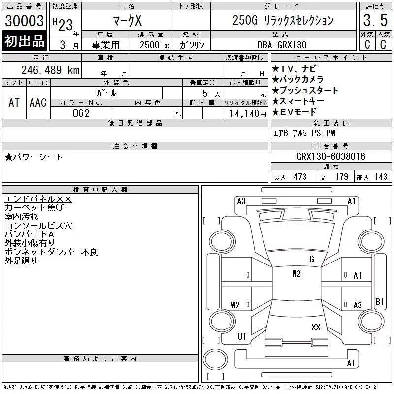 Toyota MARK X с аукциона Японии CAA Tokyo лот № 30003
