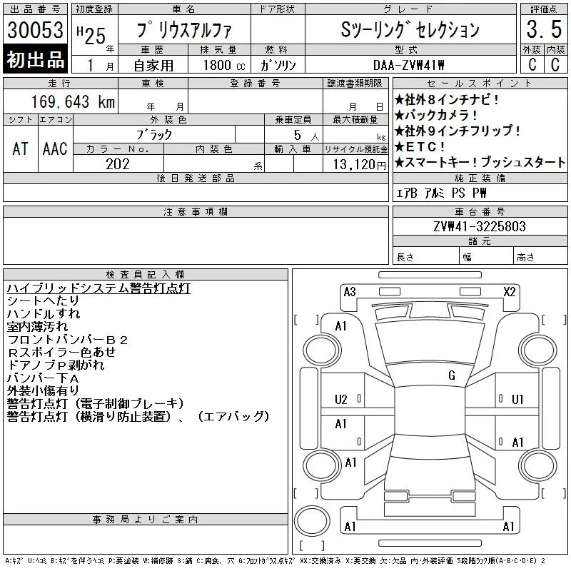 Toyota PRIUS ALPHA с аукциона Японии CAA Tokyo лот № 30053