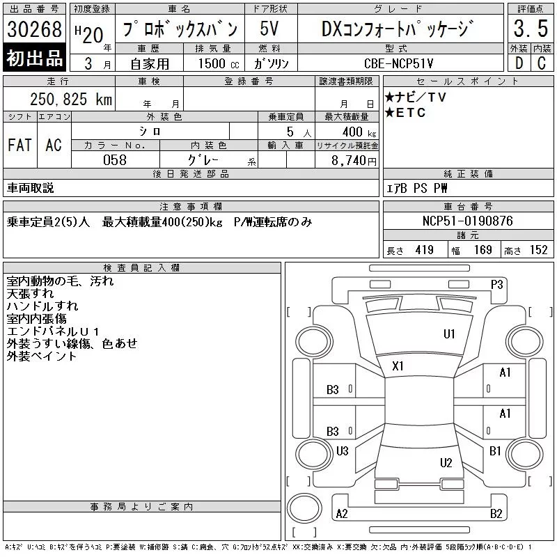 Toyota PROBOX с аукциона Японии CAA Tokyo лот № 30268