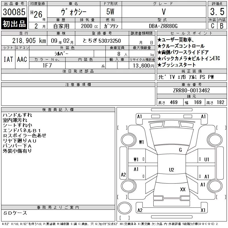Toyota VOXY с аукциона Японии CAA Tokyo лот № 30085