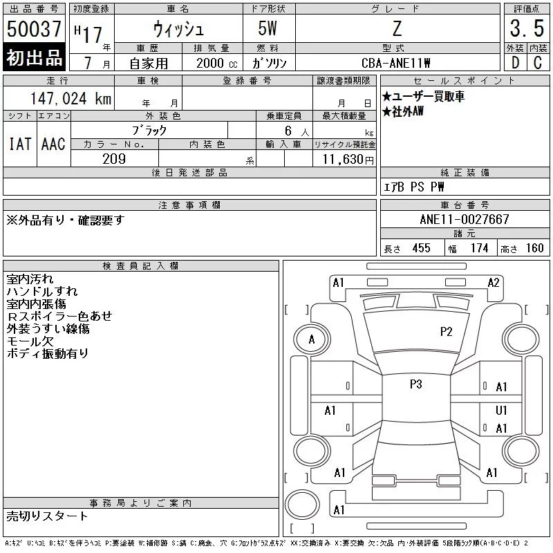 Toyota WISH с аукциона Японии CAA Tokyo лот № 50037