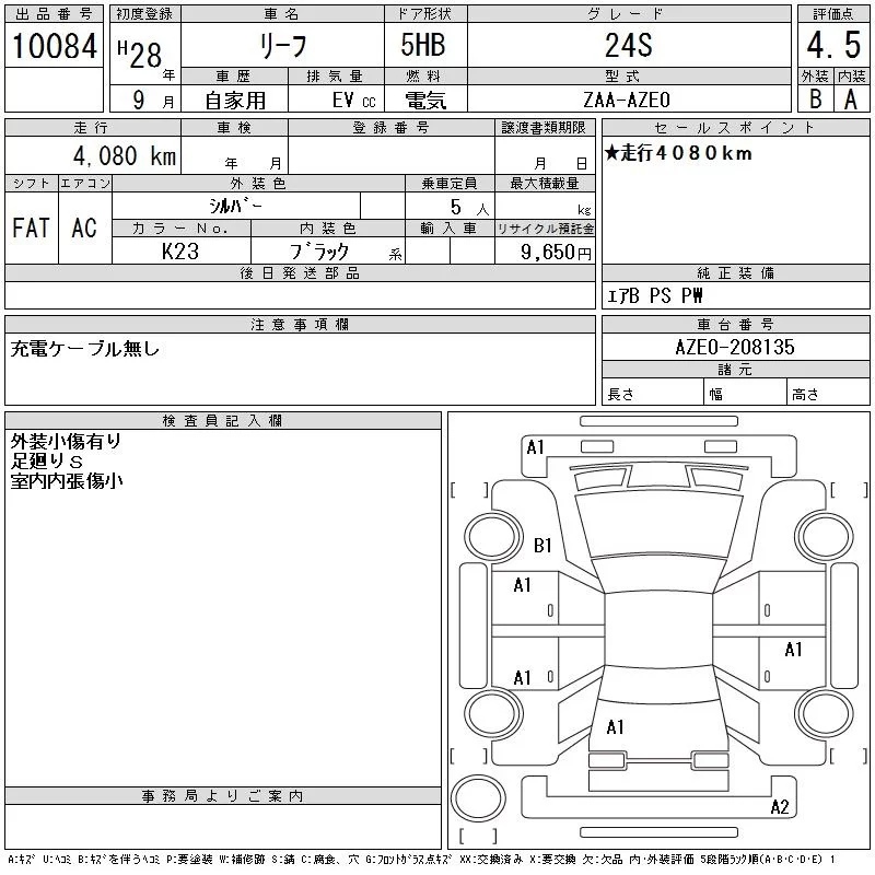 Nissan LEAF с аукциона Японии CAA Tokyo лот № 10084