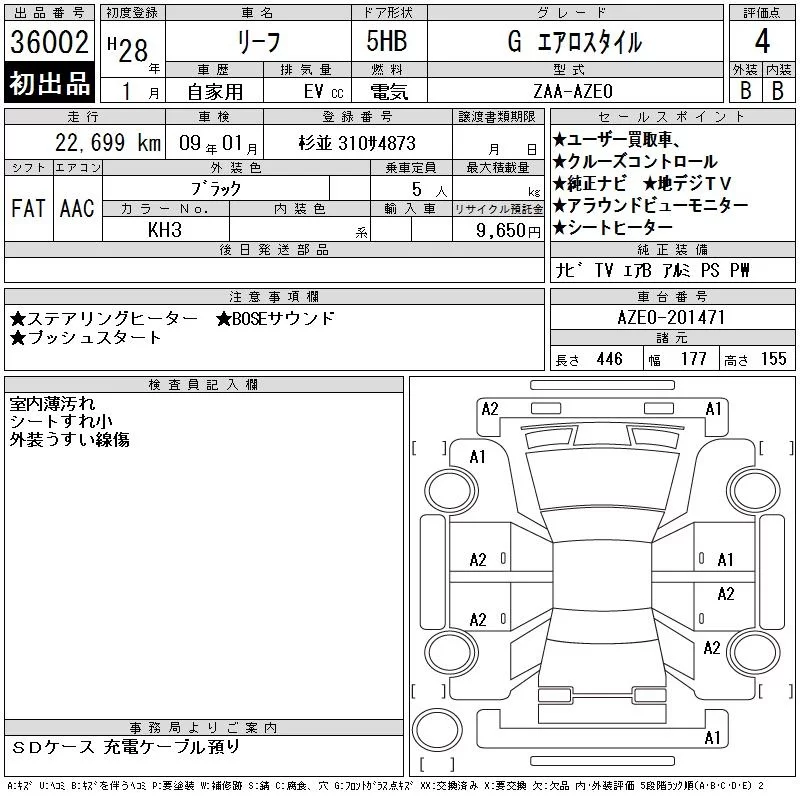 Nissan LEAF с аукциона Японии CAA Tokyo лот № 36002