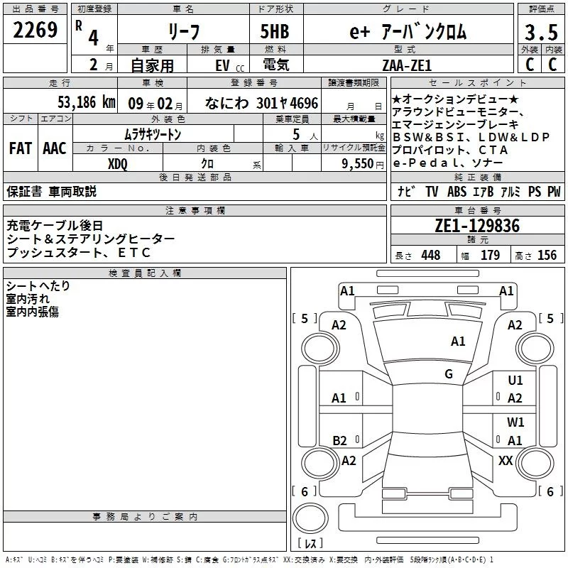 Nissan LEAF с аукциона Японии TAA Kinki лот № 2269