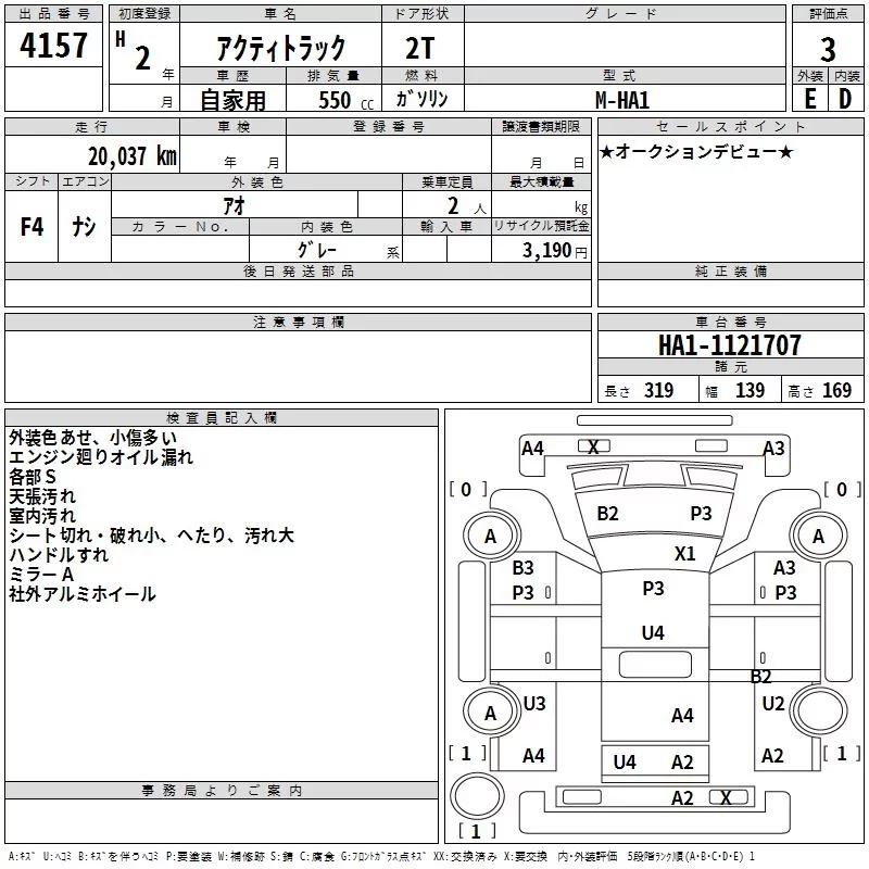 Honda ACTY TRUCK с аукциона Японии TAA Hiroshima лот № 4157