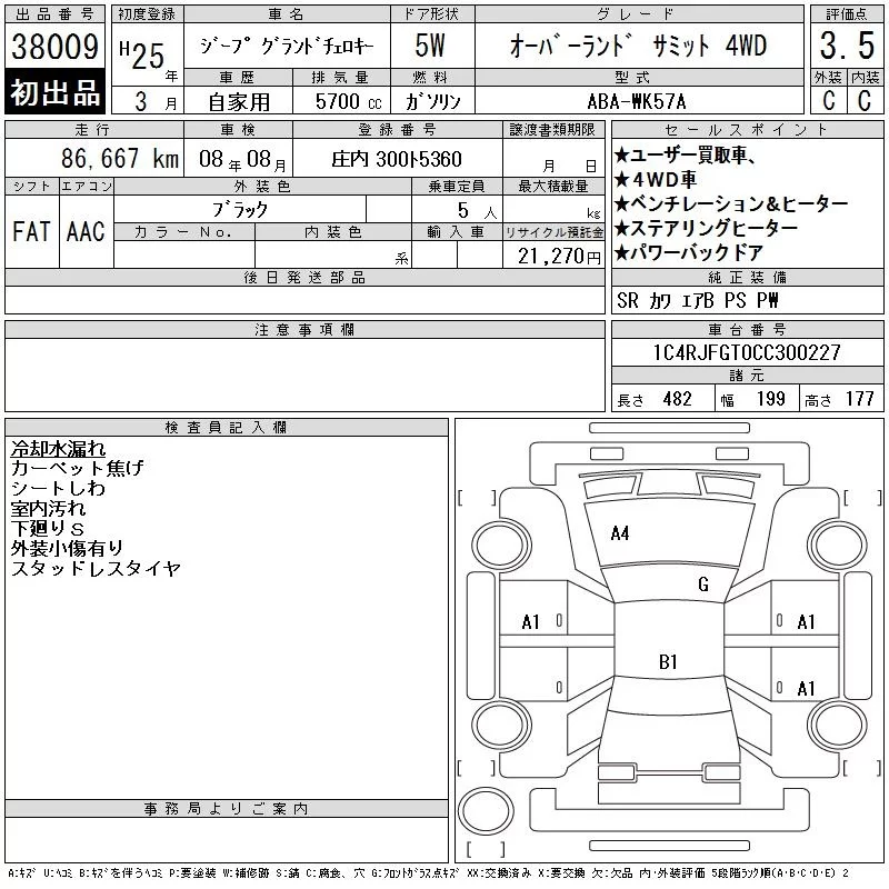 Chrysler JEEP GRAND CHEROKEE с аукциона Японии CAA Tokyo лот № 38009