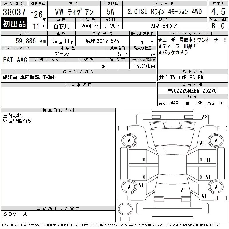 Volkswagen TIGUAN с аукциона Японии CAA Tokyo лот № 38037
