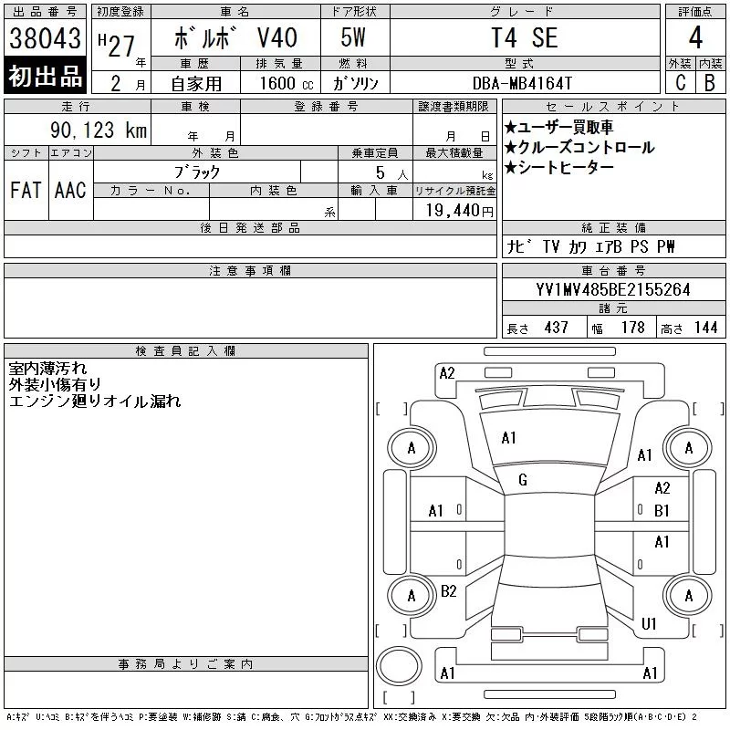 Volvo V40 с аукциона Японии CAA Tokyo лот № 38043