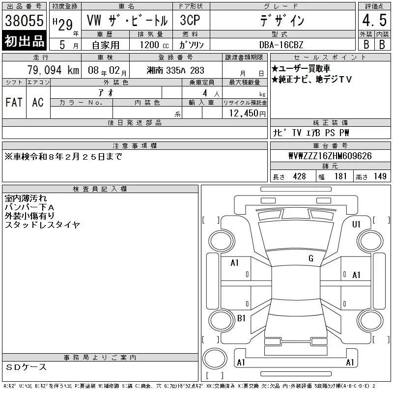 Volkswagen THE BEETLE с аукциона Японии CAA Tokyo лот № 38055