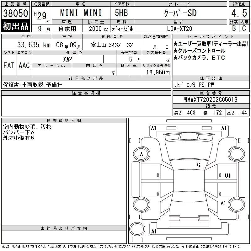 BMW MINI с аукциона Японии CAA Tokyo лот № 38050