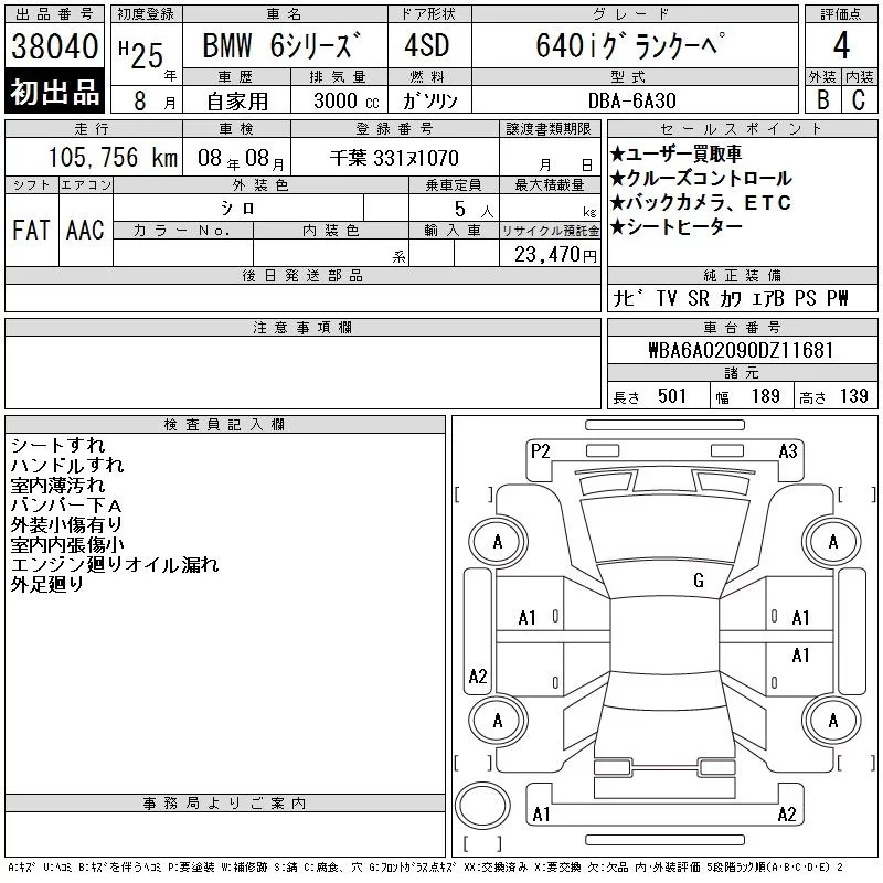 BMW 6-Series с аукциона Японии CAA Tokyo лот № 38040