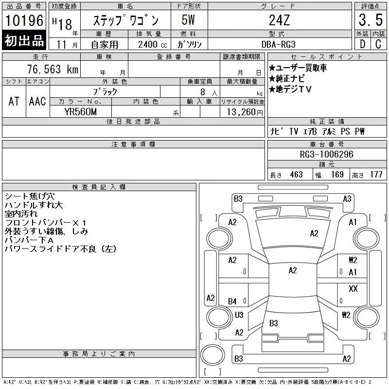 Honda STEP WAGON с аукциона Японии CAA Tokyo лот № 10196