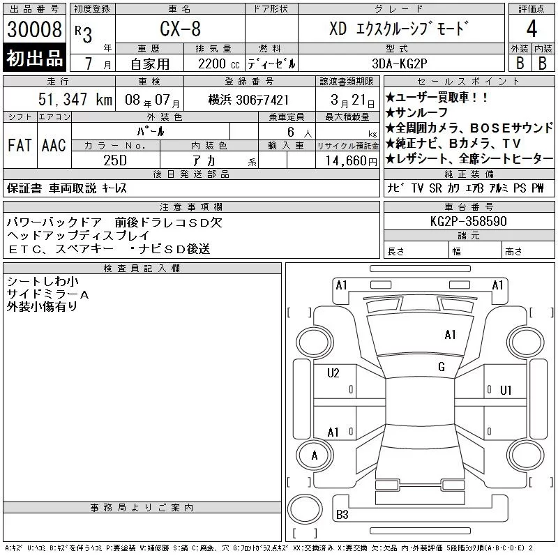 Mazda CX-8 с аукциона Японии CAA Tokyo лот № 30008