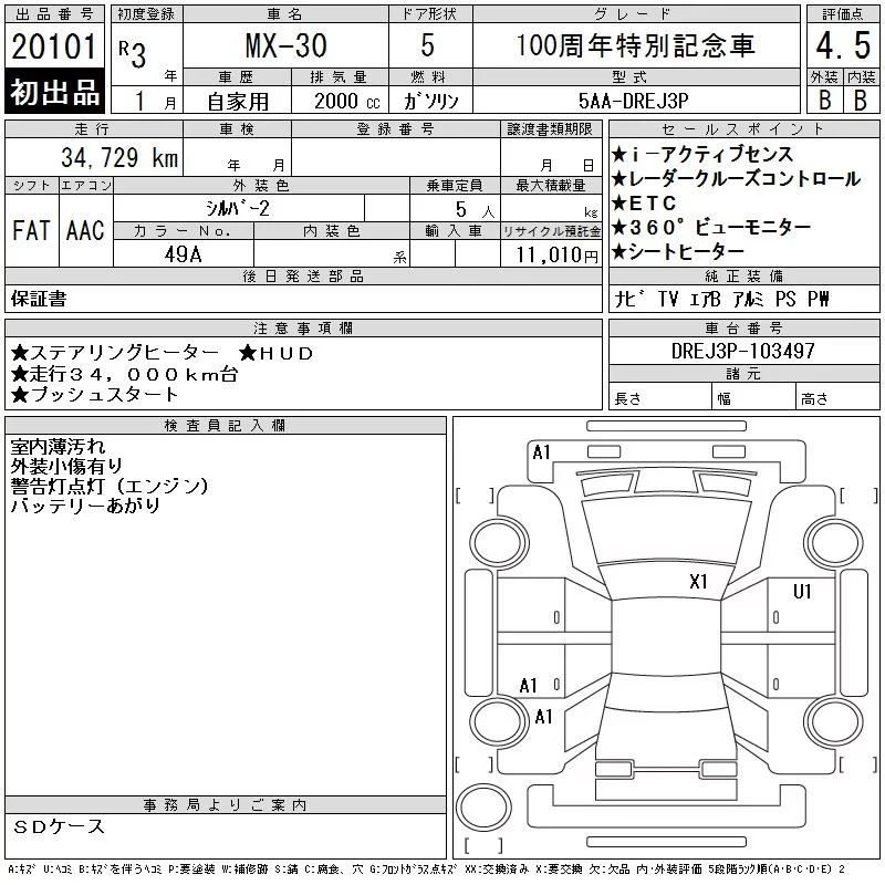 Mazda MX-30 с аукциона Японии CAA Tokyo лот № 20101