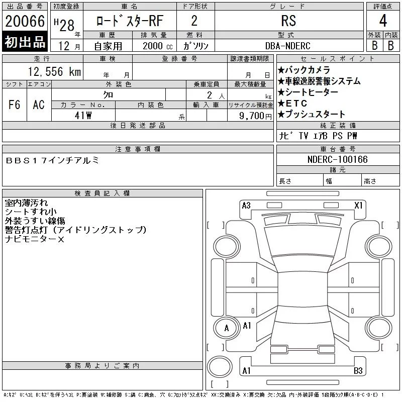 Mazda ROADSTER с аукциона Японии CAA Tokyo лот № 20066