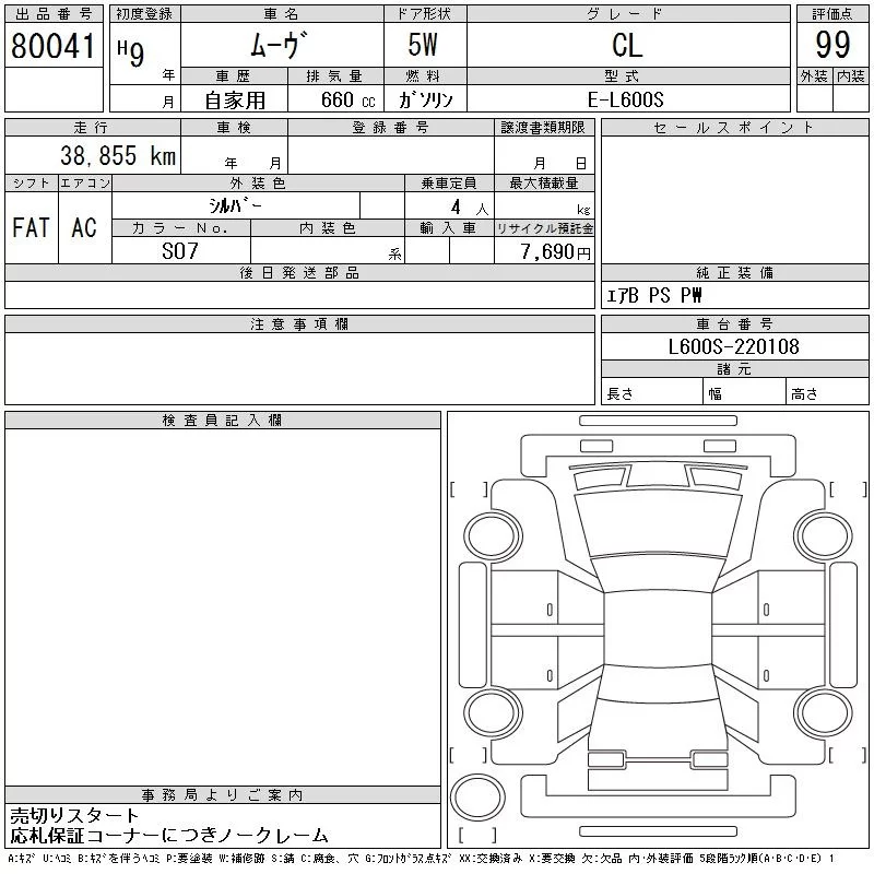 Daihatsu MOVE с аукциона Японии CAA Tokyo лот № 80041
