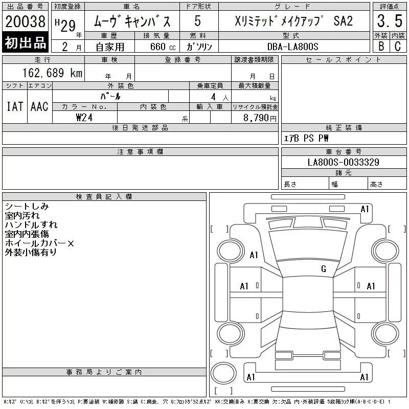 Daihatsu MOVE CANBUS с аукциона Японии CAA Tokyo лот № 20038