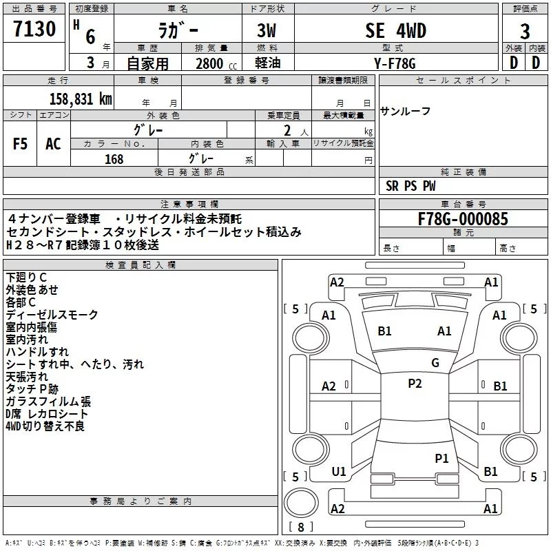 Daihatsu RUGGER с аукциона Японии TAA Hiroshima лот № 7130