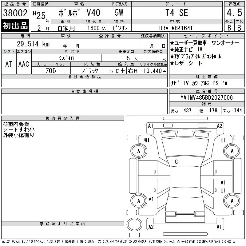 Volvo V40 с аукциона Японии CAA Tokyo лот № 38002