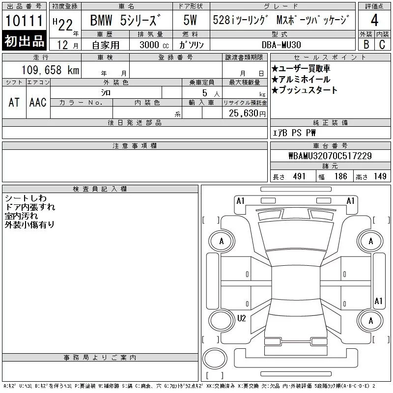 BMW 5-Series с аукциона Японии CAA Tokyo лот № 10111
