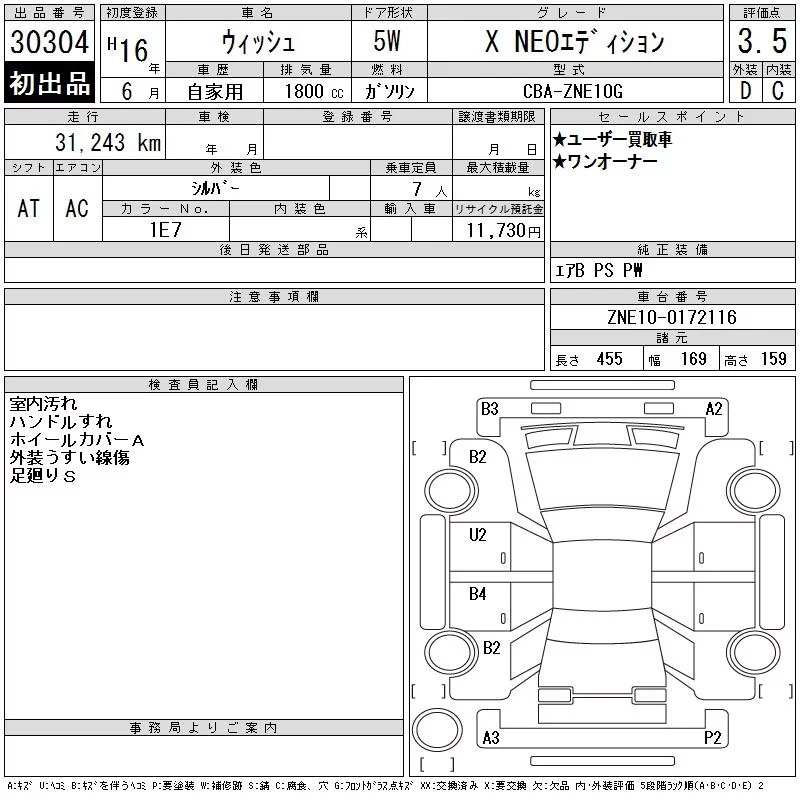 Toyota WISH с аукциона Японии CAA Tokyo лот № 30304