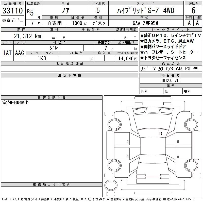 Toyota NOAH с аукциона Японии CAA Tokyo лот № 33110