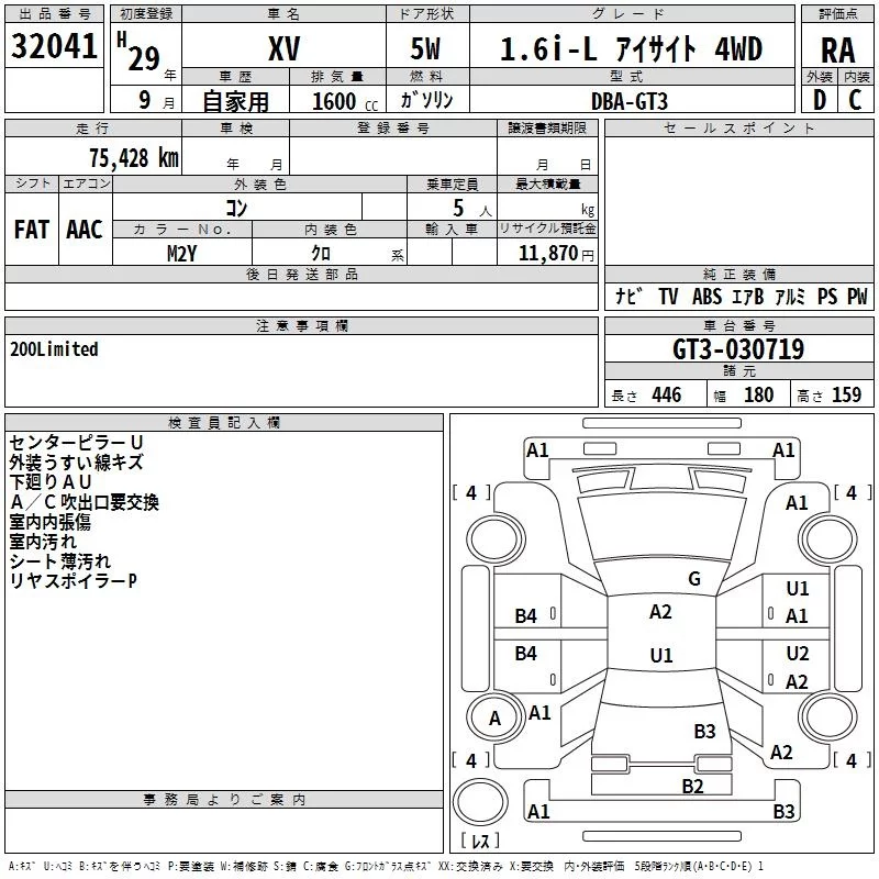 Subaru XV с аукциона Японии TAA Kinki лот № 32041