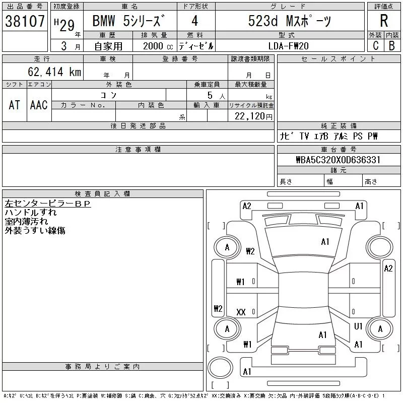 BMW 5-Series с аукциона Японии CAA Tokyo лот № 38107