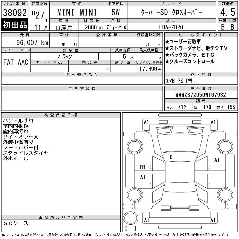 BMW MINI с аукциона Японии CAA Tokyo лот № 38092