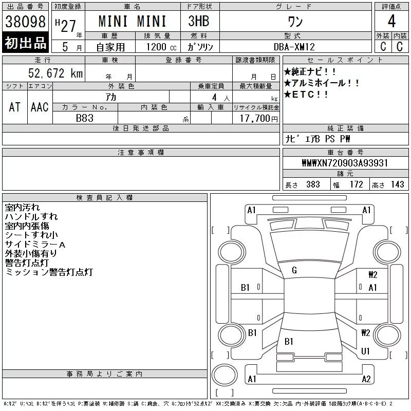 BMW MINI с аукциона Японии CAA Tokyo лот № 38098