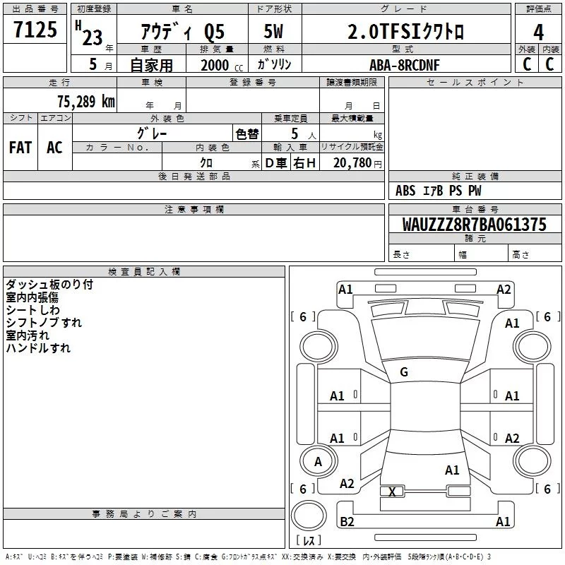 Audi Q5 с аукциона Японии TAA Kinki лот № 7125