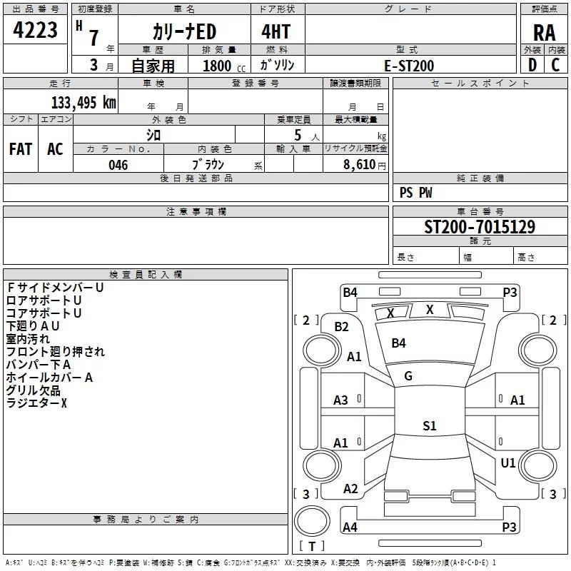Toyota CARINA ED с аукциона Японии TAA Hiroshima лот № 4223