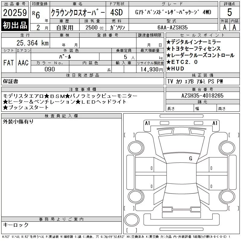 Toyota CROWN CROSSOVER с аукциона Японии CAA Tokyo лот № 20259