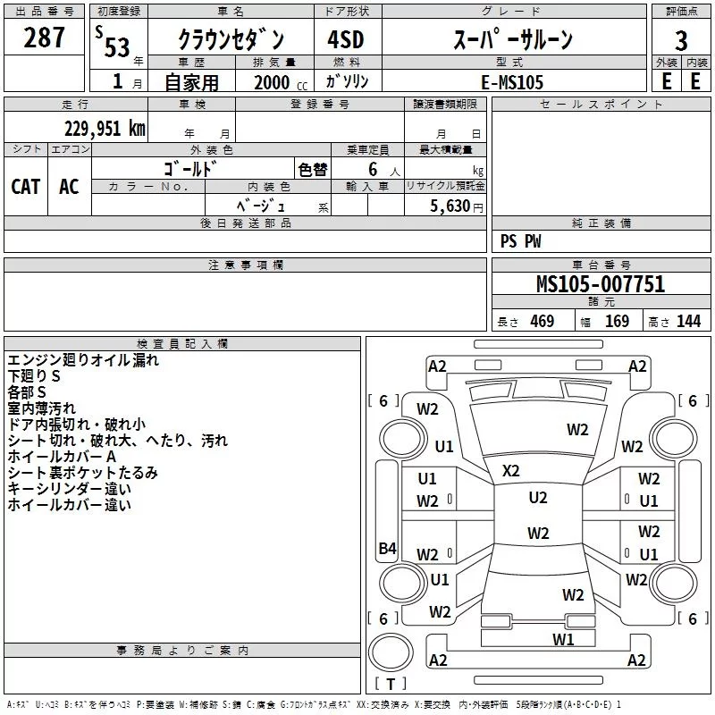 Toyota CROWN с аукциона Японии TAA Hiroshima лот № 287