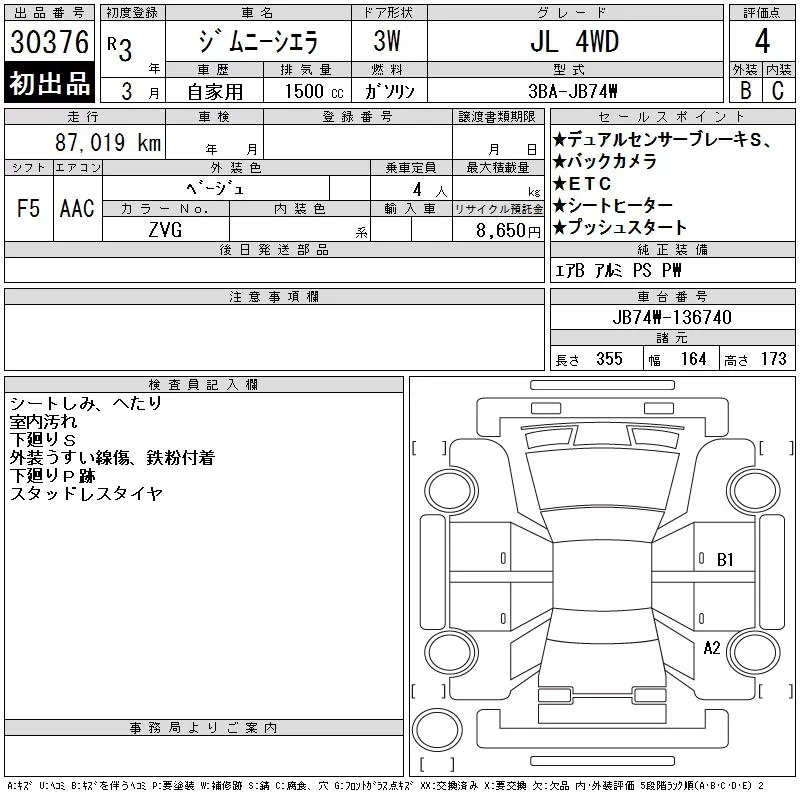 Suzuki JIMNY SIERRA с аукциона Японии CAA Tokyo лот № 30376