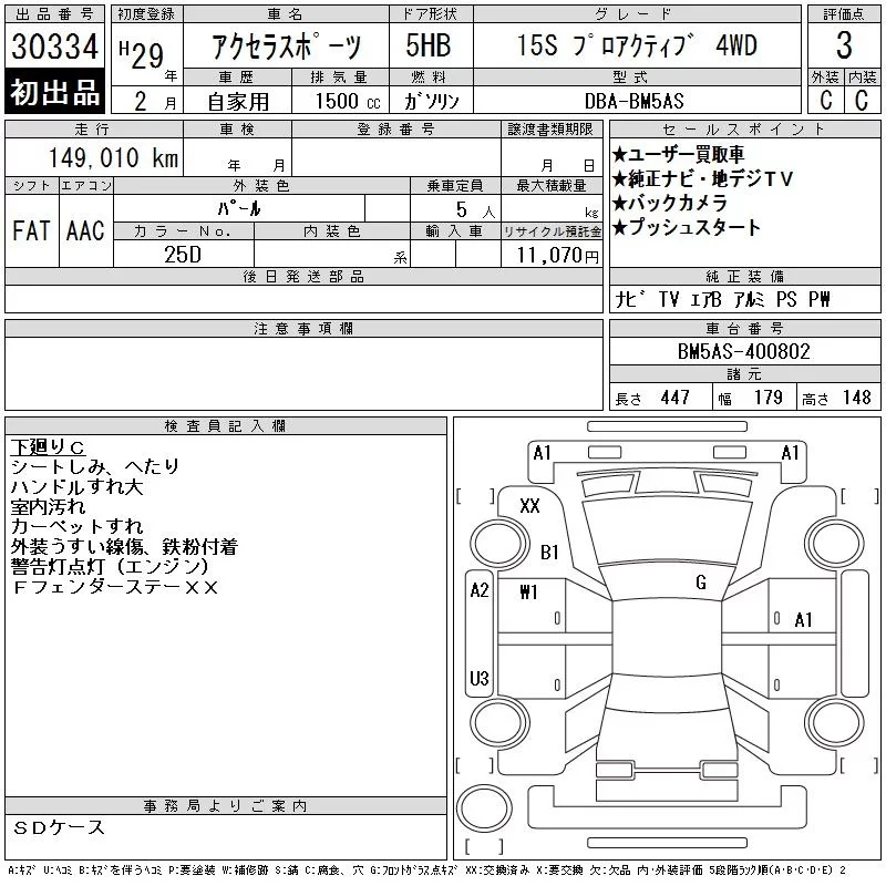 Mazda AXELA с аукциона Японии CAA Tokyo лот № 30334