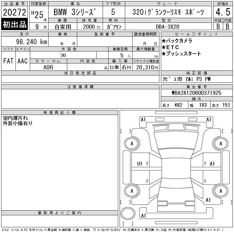 BMW 3-Series с аукциона Японии CAA Tokyo лот № 20272