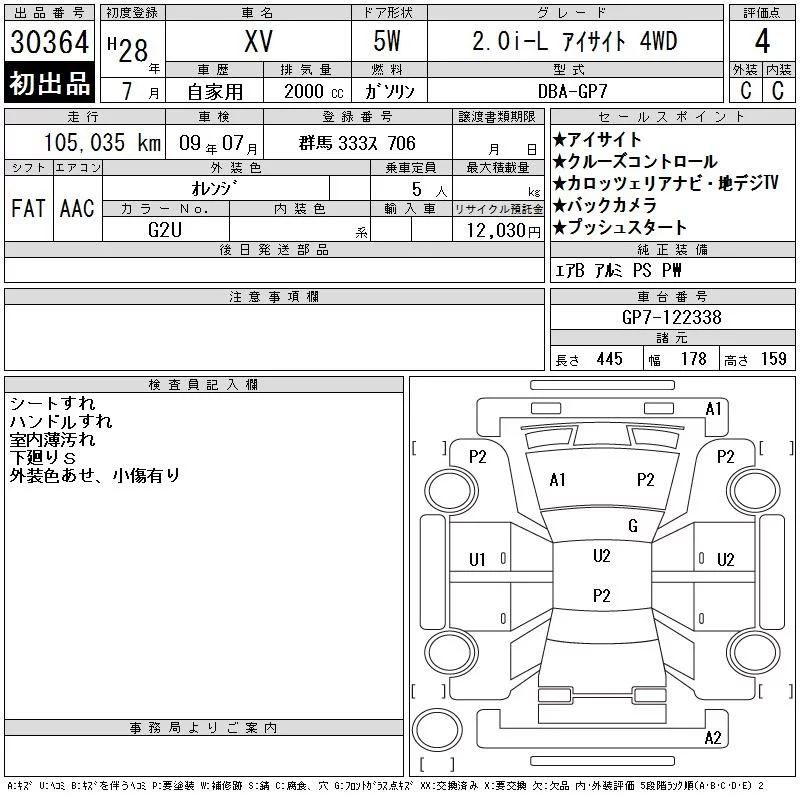 Subaru XV с аукциона Японии CAA Tokyo лот № 30364