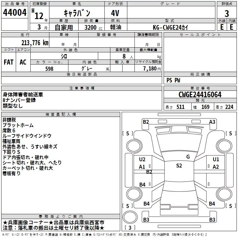 Nissan CARAVAN VAN с аукциона Японии TAA Kinki лот № 44004