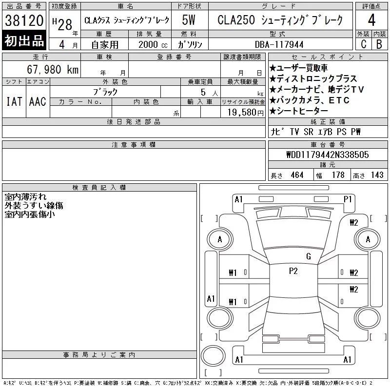 Mercedes-Benz CLA CLASS с аукциона Японии CAA Tokyo лот № 38120