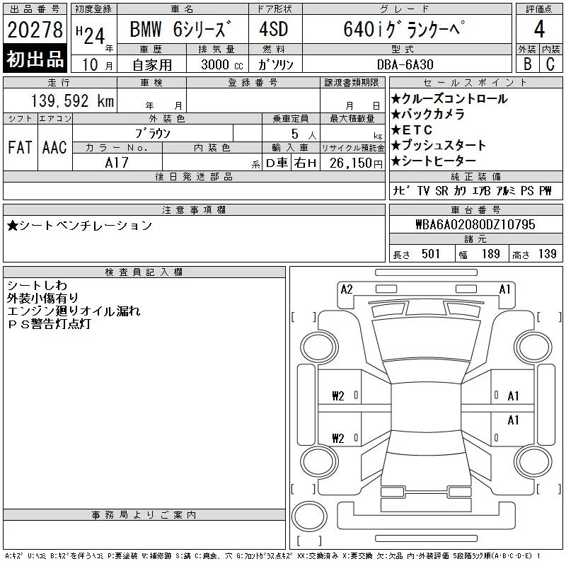 BMW 6-Series с аукциона Японии CAA Tokyo лот № 20278