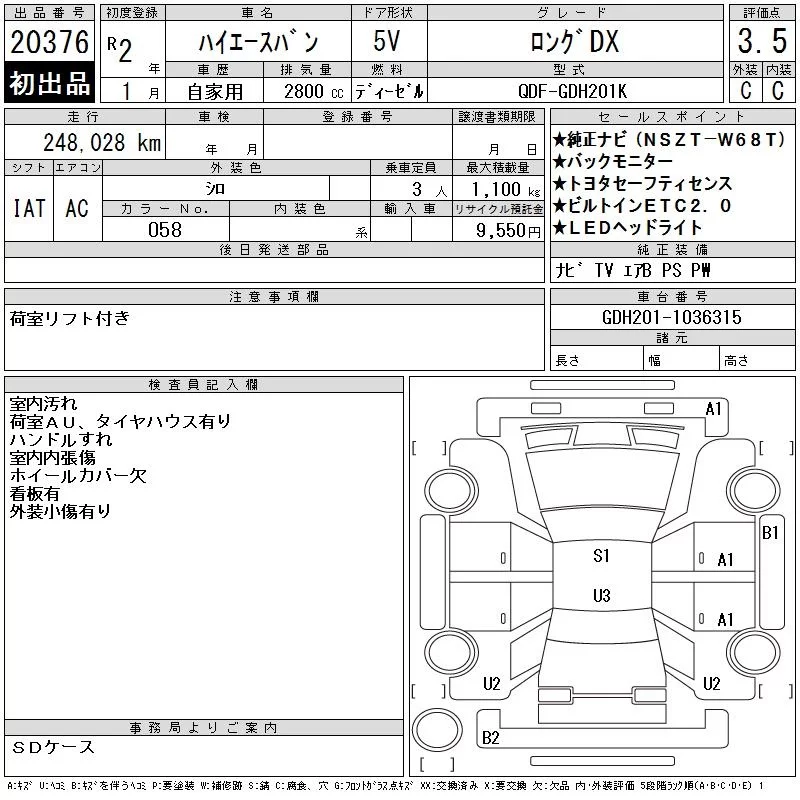 Toyota HIACE VAN с аукциона Японии CAA Tokyo лот № 20376