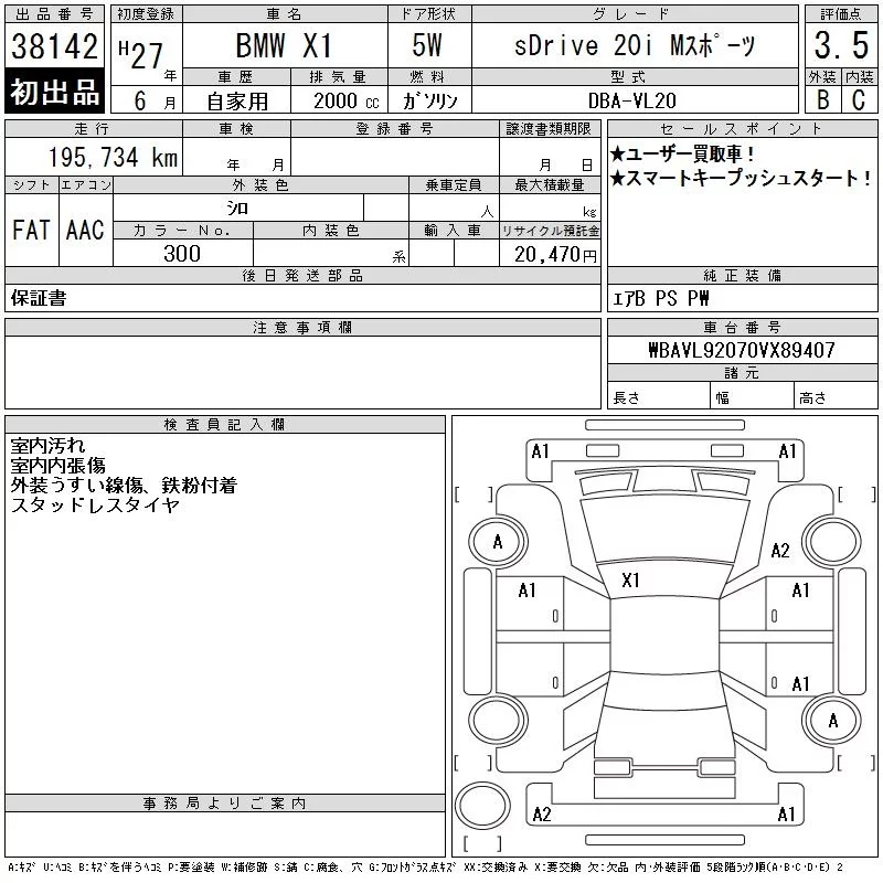 BMW X1 с аукциона Японии CAA Tokyo лот № 38142