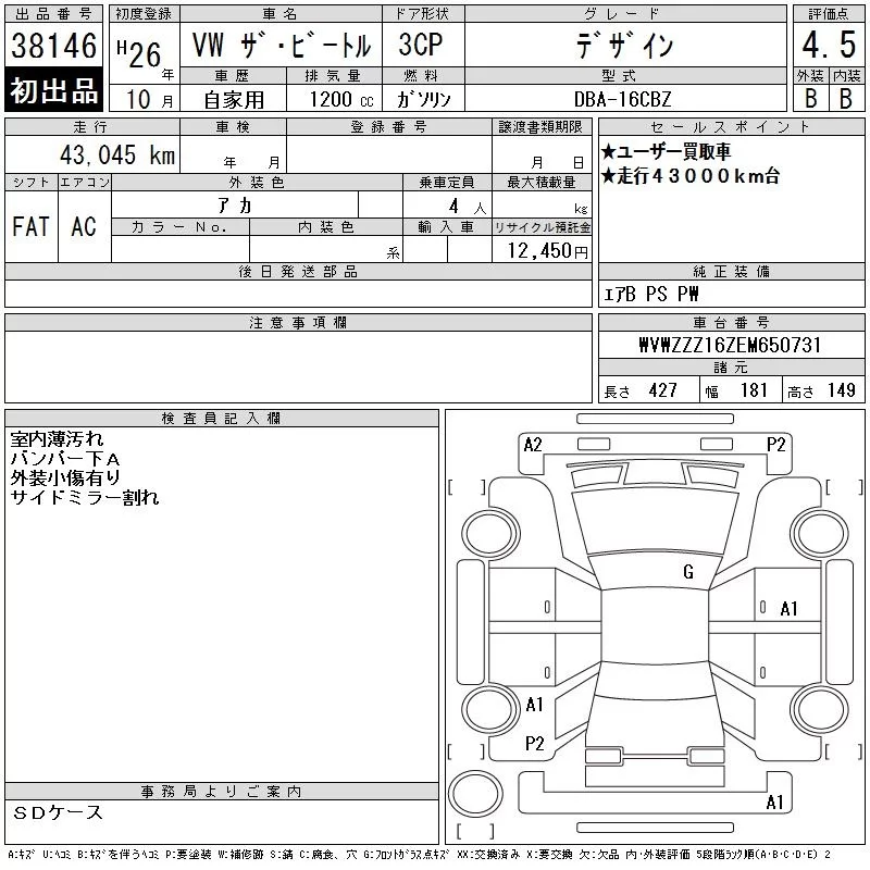 Volkswagen THE BEETLE с аукциона Японии CAA Tokyo лот № 38146
