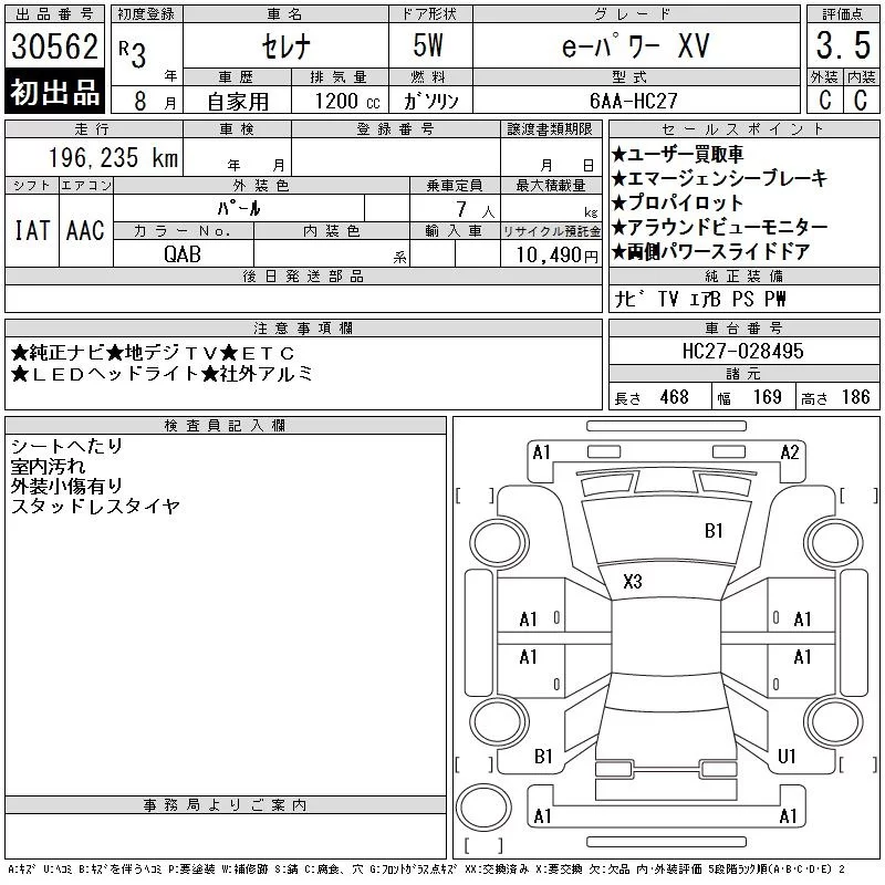 Nissan SERENA с аукциона Японии CAA Tokyo лот № 30562