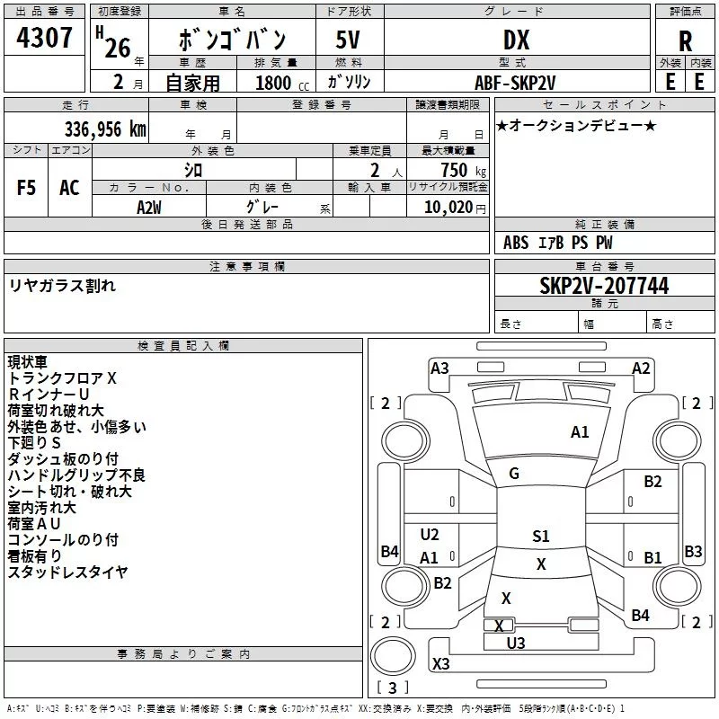 Mazda BONGO VAN с аукциона Японии TAA Hiroshima лот № 4307