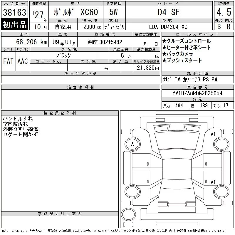 Volvo XC60 с аукциона Японии CAA Tokyo лот № 38163