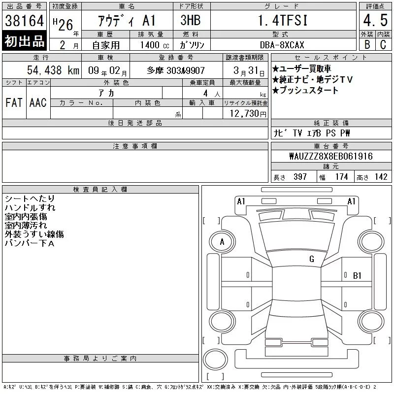 Audi A1 с аукциона Японии CAA Tokyo лот № 38164