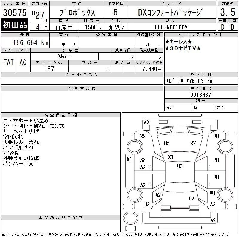 Toyota PROBOX с аукциона Японии CAA Tokyo лот № 30575