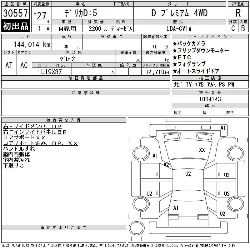 Mitsubishi DELICA D5 с аукциона Японии CAA Tokyo лот № 30557
